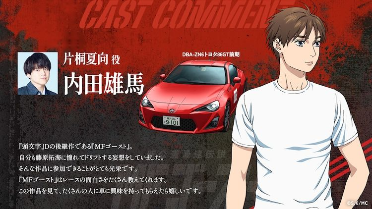 Pada bulan Oktober ini, para penggemar anime balapan jalanan akan disambut dengan kehadiran yang dinantikan, yaitu adaptasi anime dari sekuel Initial D yang ditulis oleh Shuichi Shigeno, MF Ghost. Dalam rangka membangkitkan antusiasme para penggemar, hari ini telah dipublikasikan empat potret karakter baru yang menampilkan karakter utama seri ini beserta kendaraan mereka.